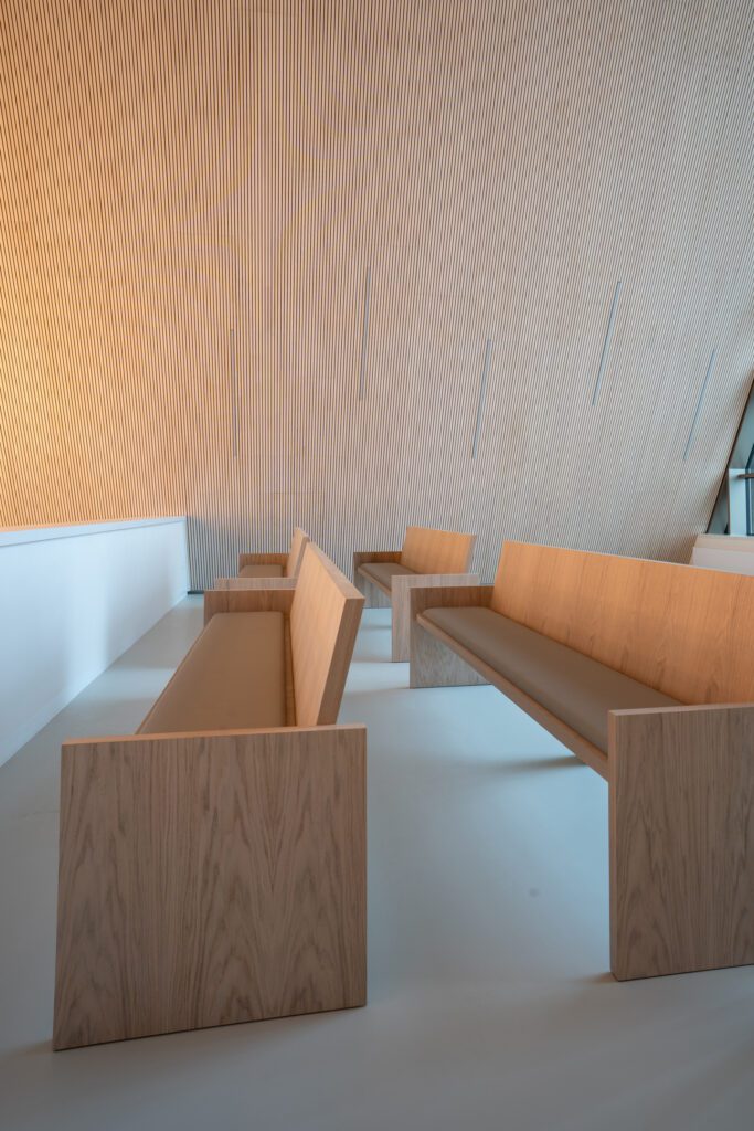 Acoustic panel used: NOVATOP ACOUSTIC, Marilyne 8/25 profile, fir wood