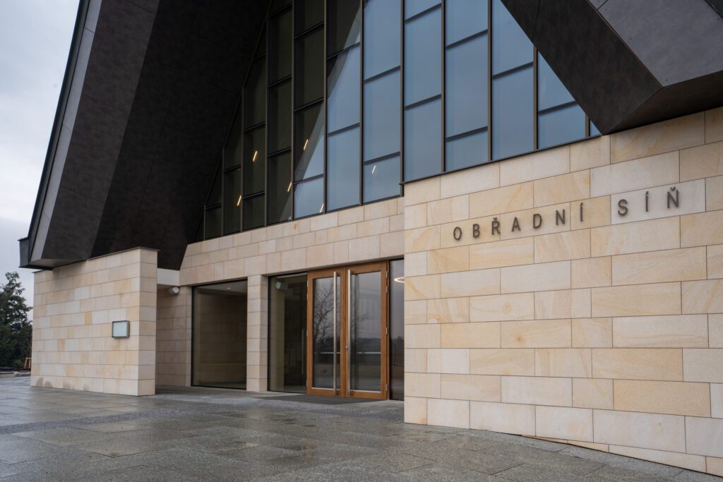 The reconstruction of the ceremonial hall in Přerov highlights the importance of high-quality room acoustics. One of the dominant features of the space is the open gable roof with a soffit made of NOVATOP wooden acoustic panels, which define the character of the interior. The panels absorb sound across a wide frequ